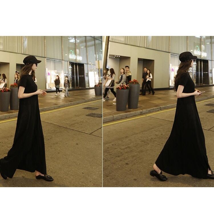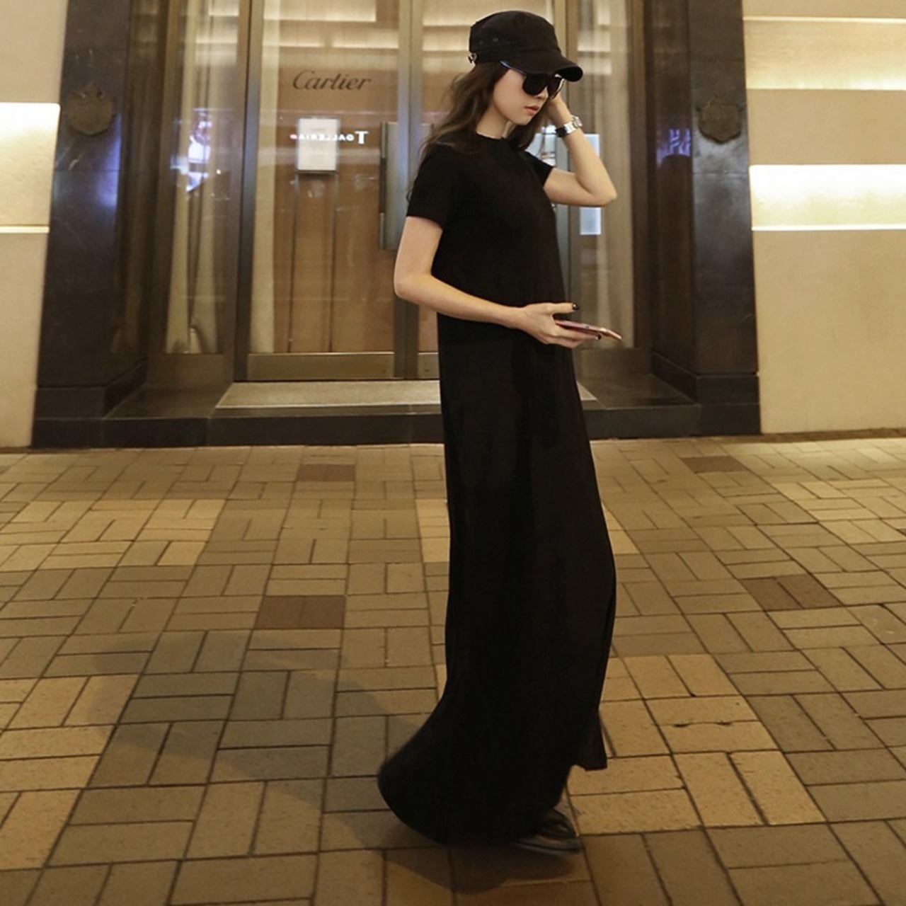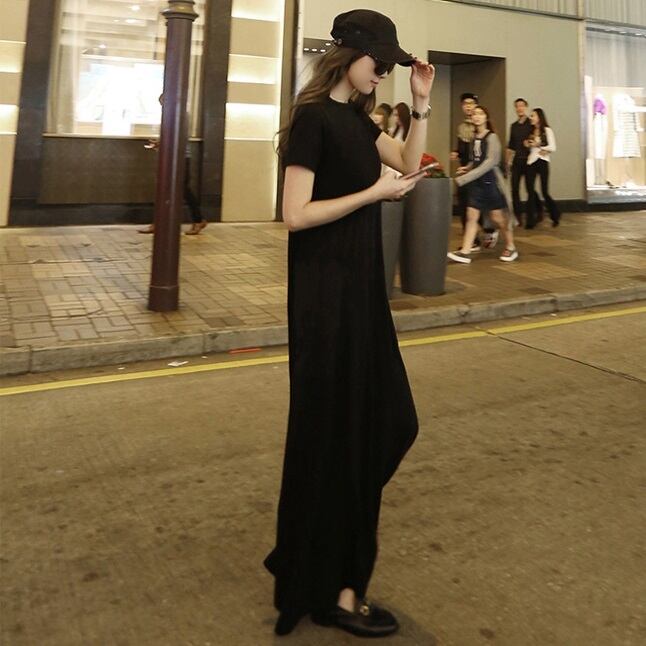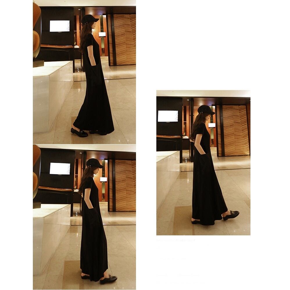 ワンピース ロング ロング丈 マキシ マキシ丈 半袖 ラウンドネック Aライン ポケット ストレッチ性 伸縮性 シンプル カジュアル 大人 上品 おしゃれ お洒落 大人女子 ラフ ボーイッシュ ルーズ モダン 抜け感 無地 夏 20代 30代 お出かけ 公園デビュー 休日 アウトドア 着回し 普段使い 韓国系 楽ちん 体系カバー サイズ M L XL 2XL ゆったり 黒 ブラック | Raforea