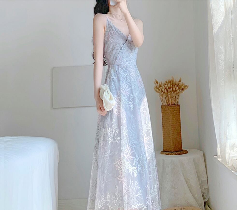 ドレス ワンピース ロングドレス Aラインドレス 膝下 ロング丈 ミディアム丈 袖なし ノースリーブ Vネック 襟なし Aライン フレア レース 刺繍 シフォン 切り替えデザイン ハイウエスト 透け感 シースルー 胸元 谷間 かわいい 大人可愛い きれいめ 大人 上品 おしゃれ お洒落 レトロ 大人可愛い 大人女子 こなれ感 ラブリー キュート ガーリー エレガント クラシック お姫様 お嬢様 清楚 柄 レディース パーティー イベント ホテル お呼ばれ パーティー XS S M L 灰色 グレー | Raforea