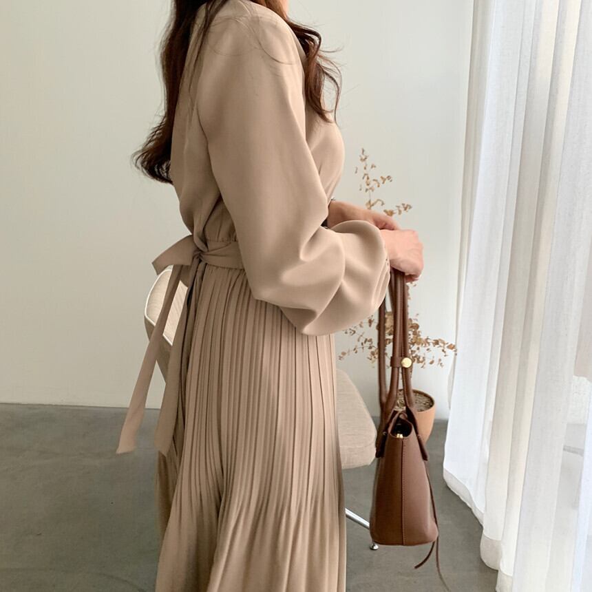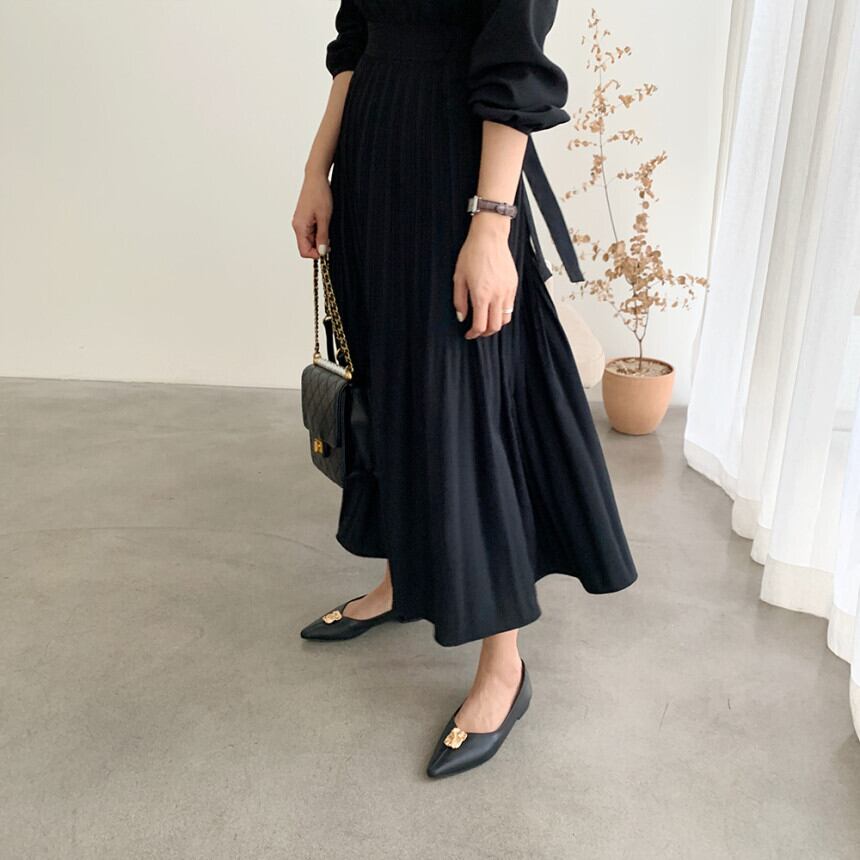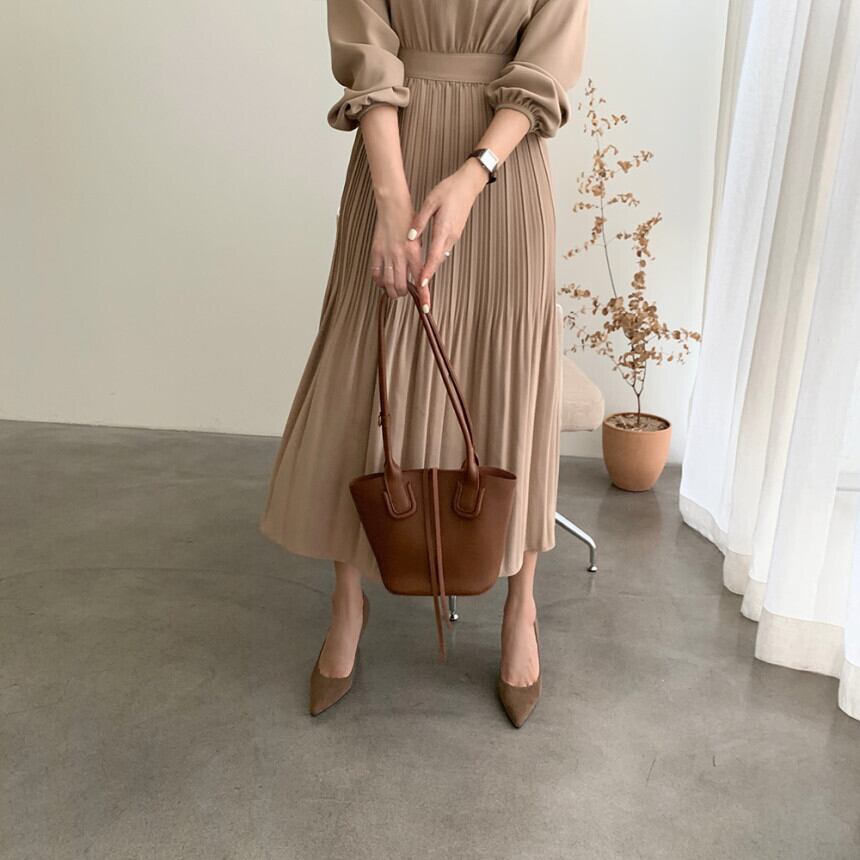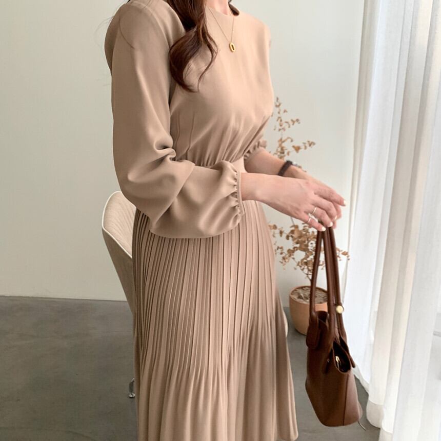 ワンピース デート プリーツスカート フレアワンピース 膝下 ロング丈 袖あり 7分袖 七分袖 パフスリーブ ラウンドネック 襟なし Aライン プリーツ ウエストマーク ハイウエスト かわいい 大人可愛い きれいめ 大人 上品 おしゃれ お洒落 かっこいい 大人可愛い 大人女子 こなれ感 エレガント モダン 無地 秋 冬 レディース デート お出かけ 女子会 休日 旅行 海 ホテル ガーデン レストラン フリーサイズ 黒 ブラック ベージュ 秋カラー | Raforea