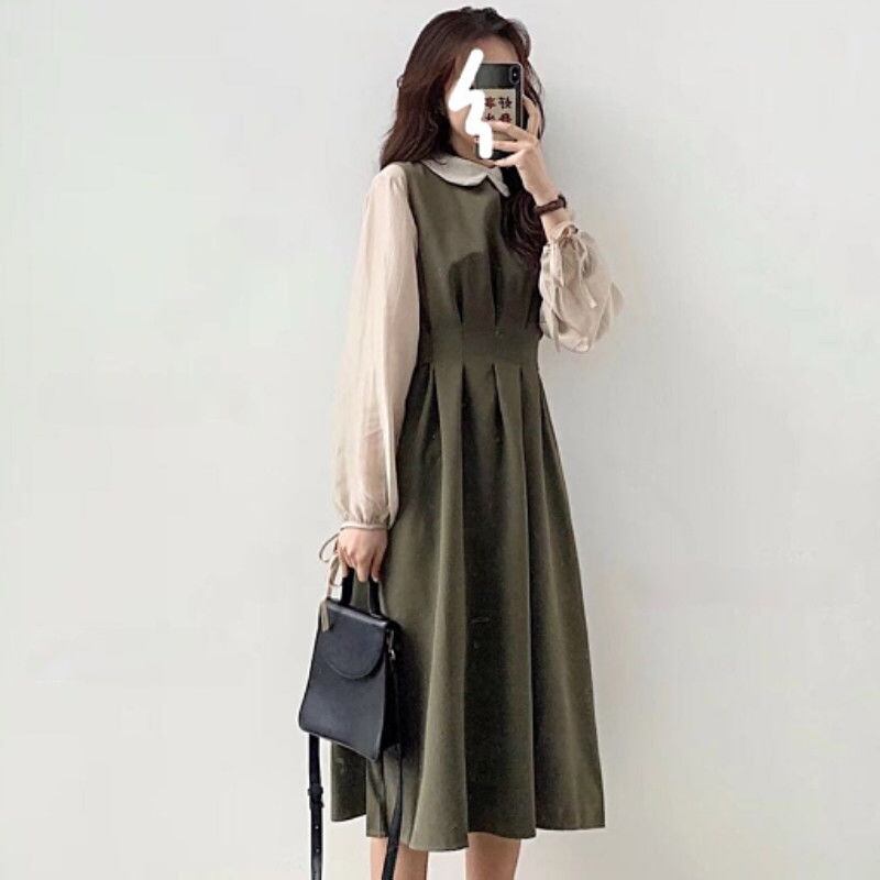 ワンピース フレアワンピース 膝下 袖あり 長袖 ラウンドネック 襟付き フレア 大人可愛い きれいめ シンプル カジュアル 大人 上品 おしゃれ お洒落 アジアン 主役級 存在感 フォーマル 無地 春 秋 10代 20代 30代 40代 レディース 女性用 OL 学生 デート お出かけ 女子会 お泊まり 休日 パーティー イベント リゾート 旅行 ホテル レストラン 着回し 普段使い トレンド インスタ映え S M L XL ブラック カーキ | Raforea
