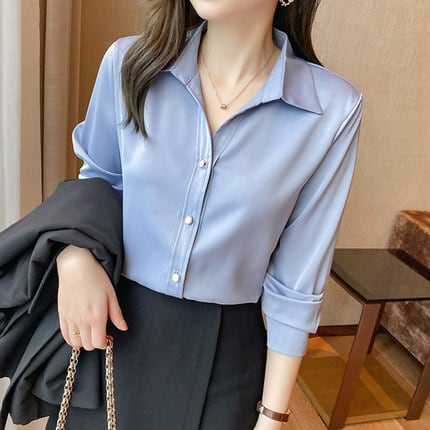 トップス シャツ ブラウス 白シャツ 白トップス 袖あり 長袖 Vネック 襟付き スリム かわいい 大人可愛い きれいめ シンプル カジュアル 大人 上品 おしゃれ お洒落 大人可愛い 大人女子 こなれ感 キュート ガーリー クール セクシー エレガント モダン 抜け感 無地 オールシーズン ビジネス OL 通勤 デート お出かけ 着回し 普段使い 韓国系 オルチャン ファッション コーデ モテ 白 ブルー 水色 | Raforea