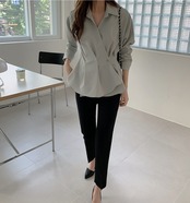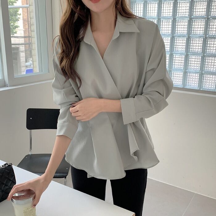 トップス シャツ ブラウス 袖あり 長袖 Vネック スリム ペプラム フリル かわいい 大人可愛い きれいめ シンプル 大人 上品 おしゃれ お洒落 レトロ 大人可愛い 大人女子 こなれ感 クール エレガント フォーマル とろみ感 無地 春 夏 秋 10代 20代 30代 レディース 女性用 OL 通勤 学生 デート お出かけ 着回し 韓国 韓国系 ファッション コーデ スタイル モテ インスタ映え S M L 青 ブルー | Raforea