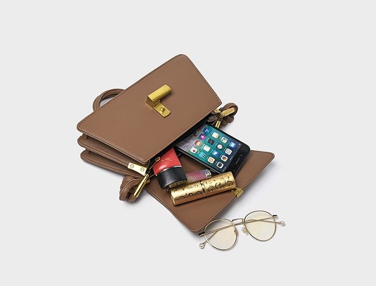 台形のフォルムが可愛くデイリー使いに重宝するアイテムです。ゴールドの金具でエレガントな装いに。見た目以上の大容量で収納力抜群です。