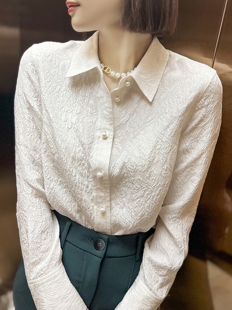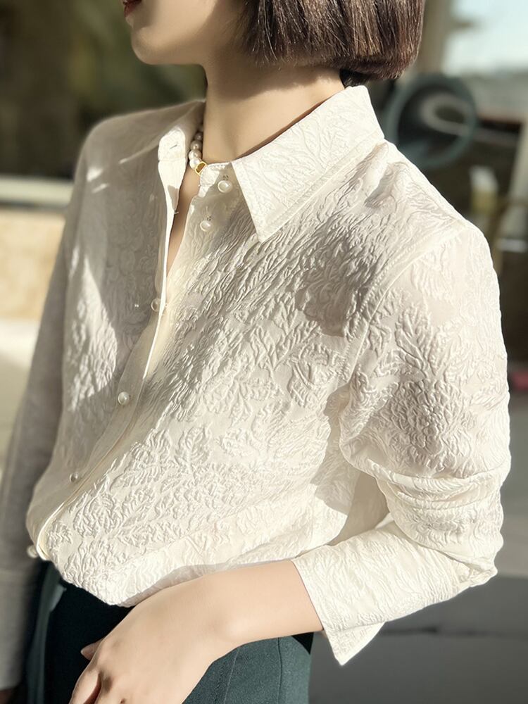 トップス シャツ ブラウス 白シャツ 白トップス 袖あり 長袖 Vネック 襟付き 刺繍 前開き ボタン パール お得 大人可愛い きれいめ 大人 上品 おしゃれ お洒落 清楚 大人女子 エレガント 存在感 フォーマル 抜け感 柄 春 夏 秋 冬 オールシーズン シーズンレス 入学式 入園式 卒業式 卒園式 ロングシーズン 20代 30代 40代 50代 レディース 女性用 OL 通勤 お出かけ パーティー イベント ホテル レストラン お呼ばれ お茶会 着回し 重ね着 モテ | Raforea