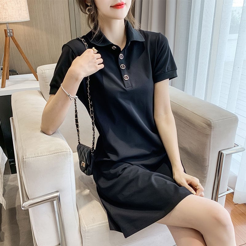 ポロワンピース ワンピース シャツワンピース ミニワンピ ミニ ミニ丈 ショート ショート丈 膝上 袖あり 半袖 Vネック 襟付き ボタン お得 かわいい 大人可愛い シンプル カジュアル おしゃれ お洒落 ラフ スポーティー 無地 春 夏 10代 20代 30代 レディース 女性用 学生 お出かけ 休日 運動 アウトドア イベント リゾート 旅行 着回し 普段使い 韓国 韓国系 オルチャン ファッション 美脚 脚長 M L XL 2XL 3XL 大きいサイズ 大きい 大きめ サイズ ブラック | Raforea