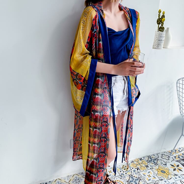 エスニック トップス カーディガン 羽織り 膝下 ロング ロング丈 袖あり 長袖 襟なし フード付き 前開き 透け感 シースルー 薄手 かわいい カジュアル おしゃれ お洒落 レトロ アジアン エスニック エキゾチック ラフ ルーズ 個性的 主役級 存在感 抜け感 柄 春 夏 秋 ロングシーズン 10代 20代 30代 40代 レディース 女性用 ママ 学生 デート お出かけ 公園 女子会 休日 アウトドア イベント 旅行 海 ランチ ショッピング 着回し 普段使い 重ね着 楽ちん | Raforea