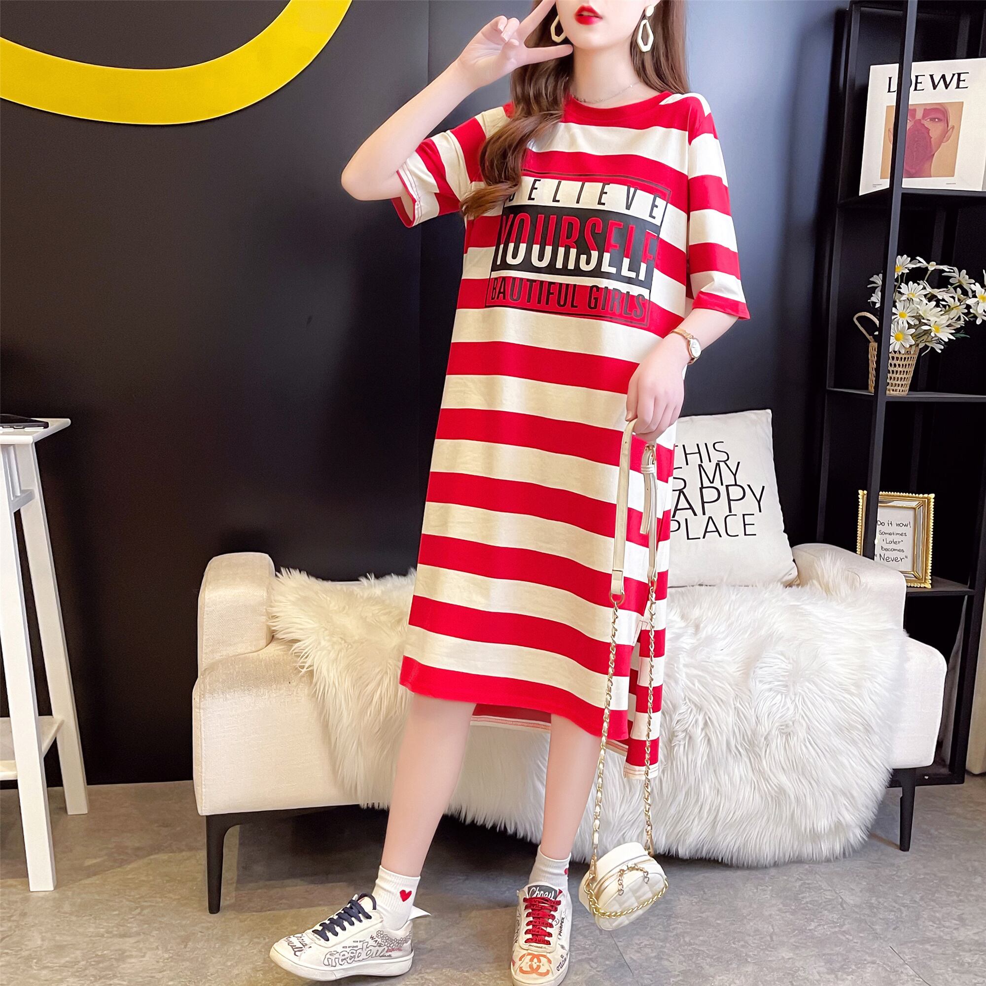 ワンピース ボーダーワンピース 膝丈 袖あり 5分袖 ラウンドネック Iライン サイドスリット ロゴ入り かわいい 大人可愛い きれいめ カジュアル 上品 お洒落 大人女子 こなれ感 ガーリー ルーズ 主役級 抜け感 ボーダー 春 夏 秋 謝恩会 二次会 20代 30代 40代 ママ マタニティ デート お出かけ 女子会 お泊まり 休日 旅行 着回し 普段使い 重ね着 お揃い オルチャン 楽ちん 体系カバー 定番 トレンド 流行 インスタ映え S M L XL 2XL ゆったり レッド ブラック | Raforea