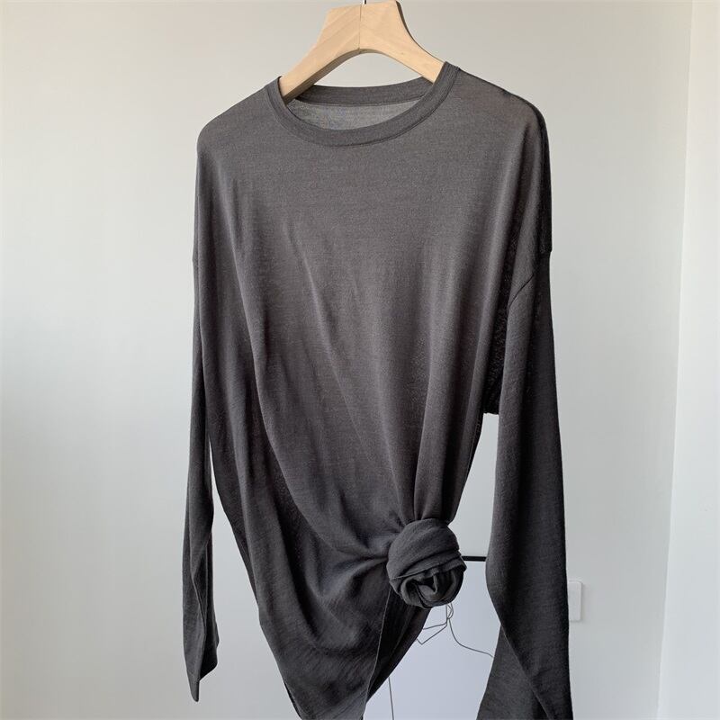 トップス Tシャツ シャツ 白シャツ 白トップス ビッグT 袖あり 長袖 ラウンドネック 襟なし スリム ストレート ウール 薄手 シンプル 大人 上品 おしゃれ かっこいい レトロ メンズライク ボーイッシュ クール モダン 無地 春 夏 秋 冬 オールシーズン 10代 20代 30代 40代 50代 60代 オフィス ビジネス OL 通勤 学生 通学 デート 公園デビュー 休日 運動 ジム ヨガ アウトドア ファッション コーデ スタイル 楽ちん 定番