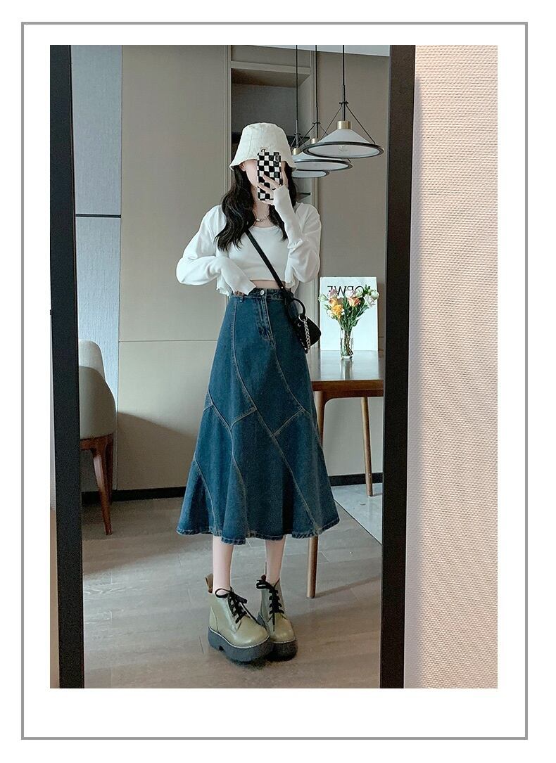 スカート ボトムス デニムスカート 膝丈 ミモレ丈 フレア Aライン ウエストマーク ファスナー ポケット デニム シンプル カジュアル レトロ こなれ感 ラフ スポーティー ガーリー モード系 無地 春 夏 秋 10代 20代 30代 学生 通学 お出かけ 公園デビュー 女子会 お泊まり 休日 運動 アウトドア 普段使い コーデ 楽ちん 定番 サイズ S M L XL 色展開 青 | Raforea