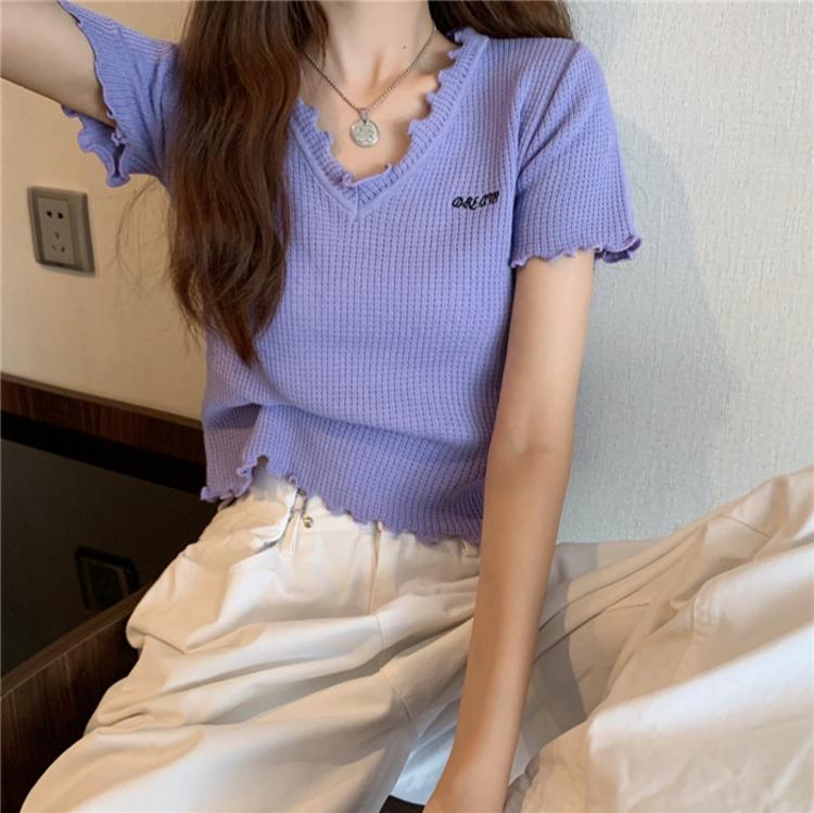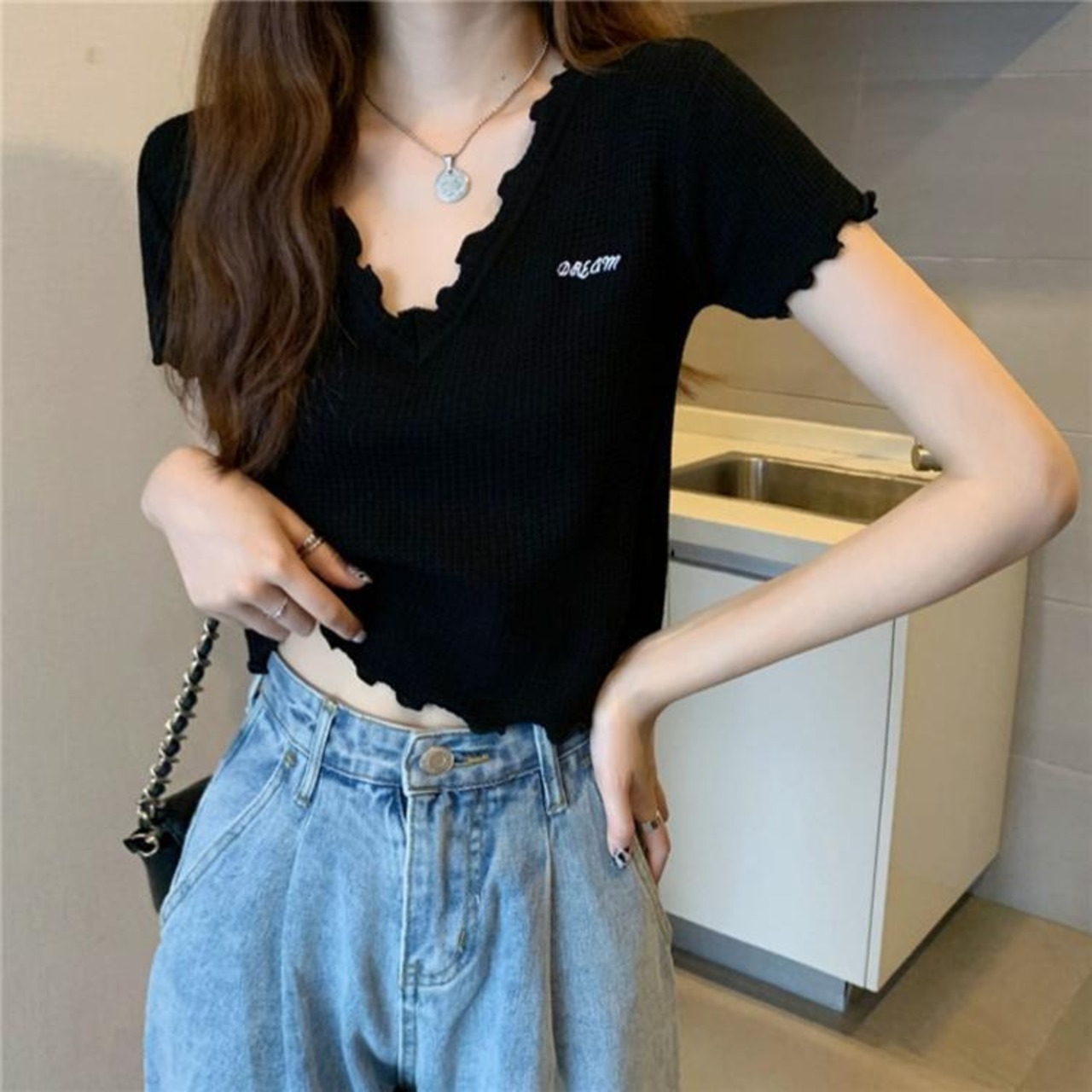 トップス Tシャツ シャツ プルオーバー 白シャツ 白トップス ショート ショート丈 袖あり 半袖 5分袖 五分袖 Vネック 襟なし スリム タイト 細身 スマート フリル 伸縮性 薄手 かわいい 大人可愛い シンプル カジュアル おしゃれ お洒落 大人可愛い 大人女子 こなれ感 ラフ ラブリー キュート ガーリー 無地 プリント 春 夏 秋 10代 20代 30代 学生 通学 お出かけ 公園デビュー 女子会 休日 運動 ジム ヨガ アウトドア 海 プール 着回し 普段使い | Raforea