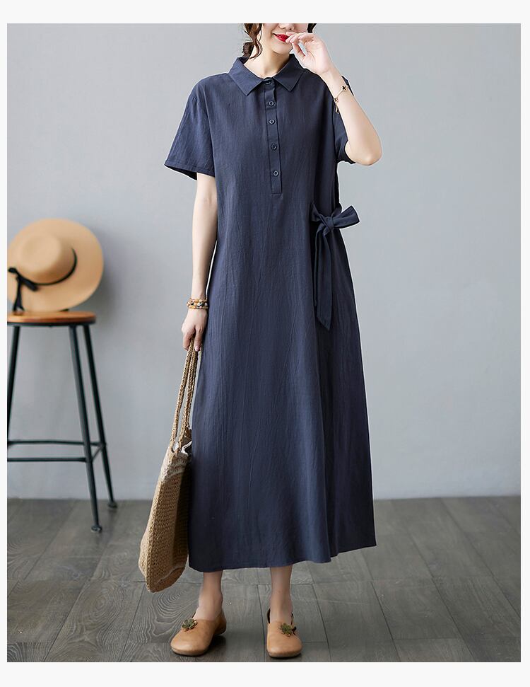 ワンピース プルオーバー ロングスカート シャツワンピース ロング ロング丈 袖あり 半袖 襟付き Aライン 大人可愛い シンプル カジュアル 大人 大人女子 ラフ ルーズ 無地 春 夏 20代 30代 40代 レディース 女性用 着回し 普段使い 重ね着 楽ちん 体系カバー M L XL 2XL 大きいサイズ 大きめ ゆったり ゆる 黒 ブラック カーキ ネイビー | Raforea