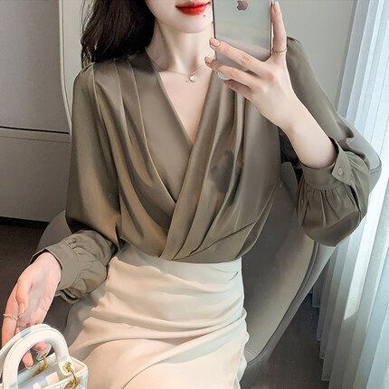 ブラウス トップス シャツ 袖あり 長袖 Vネック カシュクール 襟なし 大人可愛い きれいめ シンプル 大人 上品 おしゃれ 清楚 大人女子 クール セクシー エレガント フォーマル 抜け感 知的 無地 春 秋 冬 入学式 入園式 卒業式 卒園式 ロングシーズン 10代 20代 30代 40代 50代 レディース 女性用 ビジネス OL 通勤 デート パーティー ホテル レストラン お呼ばれ お茶会 ランチ オフィス 着回し 普段使い S M L XL 2XL | Raforea