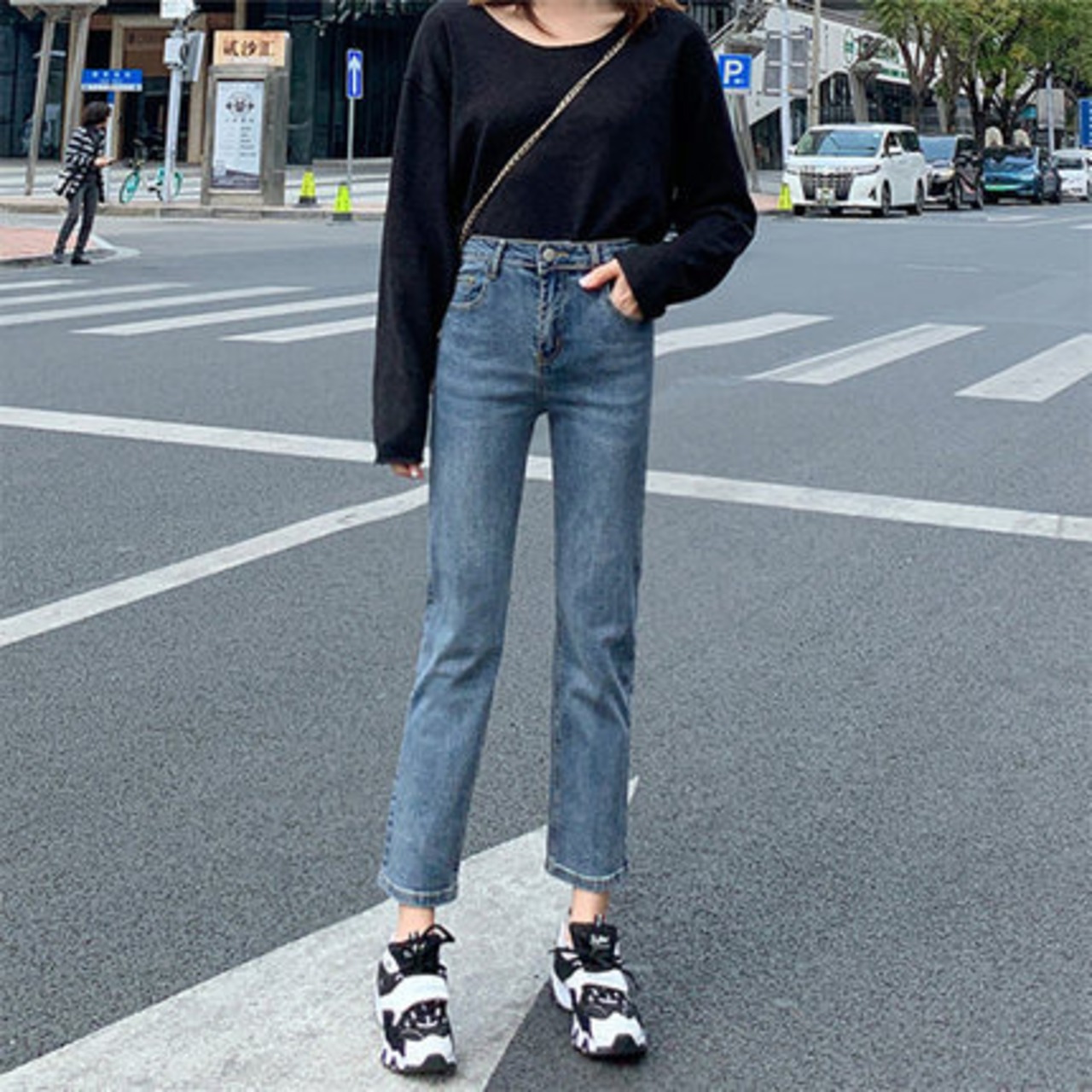 足首が見えるのでメリハリのあるスタイルに。