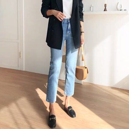 すとんとしたシルエットのデニムパンツ。