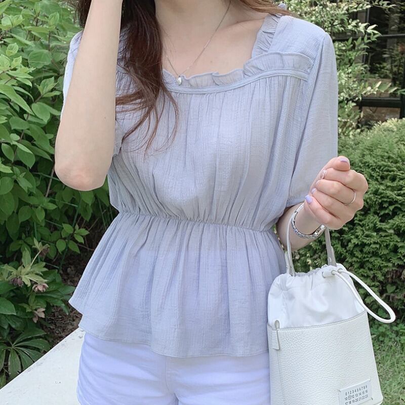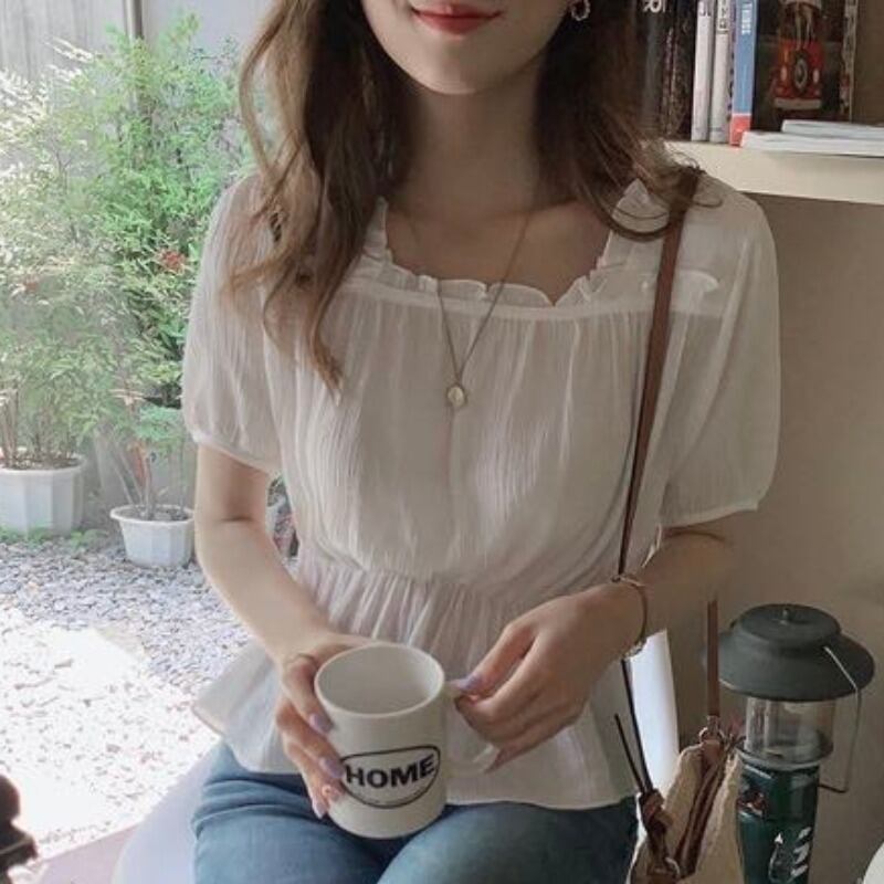 ペプラムトップス トップス シャツ 白シャツ 白トップス 袖あり 半袖 スクエアネック 襟なし フレア ペプラム ハイウエスト 透け感 薄手 かわいい 大人可愛い きれいめ シンプル 大人 上品 おしゃれ お洒落 大人女子 ラブリー キュート ガーリー 抜け感 無地 春 夏 秋 ロングシーズン 10代 20代 30代 40代 レディース 女性用 ママ 学生 デート お出かけ 公園 休日 アウトドア イベント 旅行 ランチ ショッピング 着回し 普段使い 細見え スタイルアップ ホワイト ライトブルー | Raforea