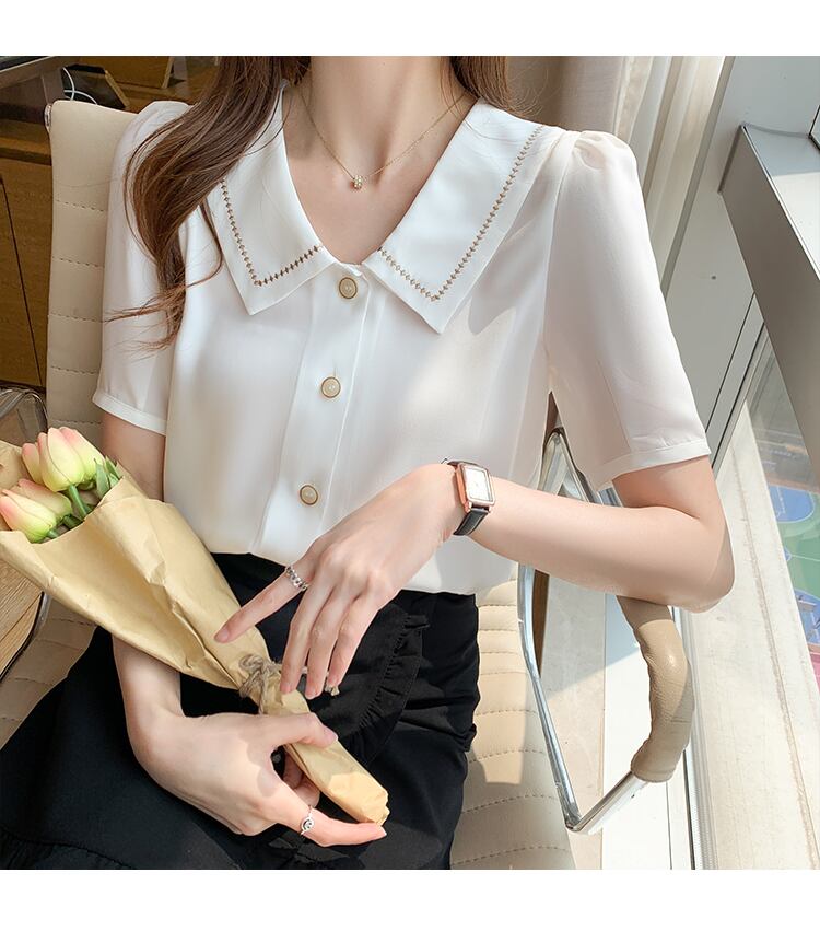 ブラウス トップス シャツ 白シャツ 白トップス 袖あり 半袖 Vネック 襟付き 刺繍 前開き ボタン ステッチ かわいい 大人可愛い おしゃれ お洒落 レトロ 清楚 ラブリー キュート ガーリー モダン シック 無地 春 夏 秋 入学式 入園式 卒業式 卒園式 ロングシーズン 10代 20代 30代 40代 レディース 女性用 ママ 女の子 OL 通勤 学生 通学 デート お出かけ 女子会 休日 お茶会 ランチ ショッピング 着回し 普段使い モテ 大きいサイズ ホワイト | Raforea