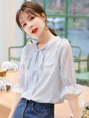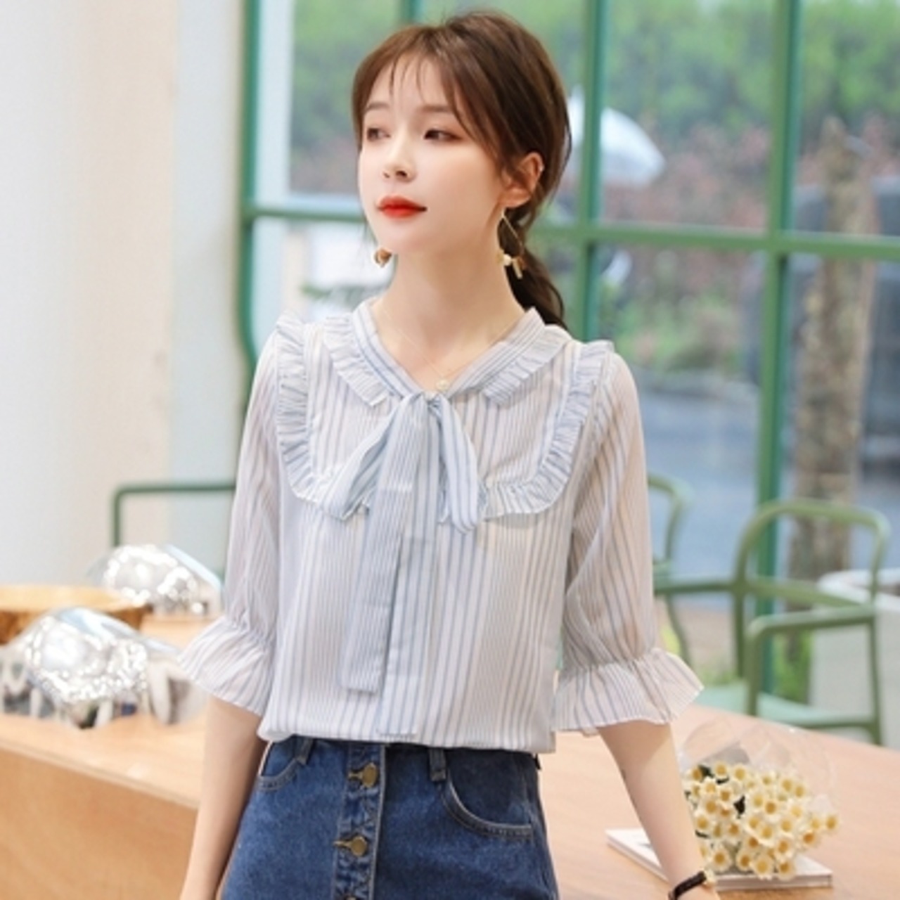 ブラウス トップス シャツ 袖あり 半袖 5分袖 五分袖 Vネック 襟なし タイ フリル リボン 薄手 かわいい 大人可愛い きれいめ 大人 上品 おしゃれ お洒落 清楚 大人女子 ラブリー キュート ガーリー 爽やか 柄 ストライプ 春 夏 ロングシーズン 10代 20代 30代 レディース 女性用 ママ OL 通勤 学生 デート お出かけ 女子会 休日 旅行 海 レストラン お茶会 ランチ オフィス ショッピング 着回し 普段使い モテ 体系カバー 二の腕カバー S M L XL 2XL | Raforea
