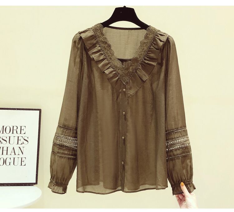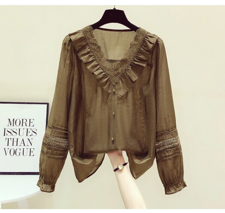 トップス シャツ ブラウス 袖あり 長袖 Vネック 襟なし レース 刺繍 フリル 前開き 透け感 シースルー 薄手 きれいめ 大人 上品 おしゃれ お洒落 清楚 大人女子 ラブリー キュート ガーリー エレガント モダン 主役級 存在感 抜け感 シック 無地 春 秋 冬 入学式 入園式 卒業式 卒園式 ロングシーズン 10代 20代 30代 40代 50代 レディース 女性用 ママ OL 通勤 学生 デート お出かけ 女子会 休日 ホテル ブラウン ブラック ダークブラウン S M L XL 2XL | Raforea