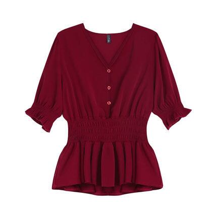 トップス カットソー 袖あり 半袖 パフスリーブ Vネック ペプラム フリル かわいい 大人可愛い きれいめ シンプル 大人 上品 おしゃれ お洒落 大人可愛い 大人女子 こなれ感 ラブリー 無地 春 夏 10代 20代 30代 レディース 女性用 OL 学生 デート お出かけ 着回し 普段使い ファッション コーデ スタイル モテ インスタ映え S M L XL 2XL 白 ホワイト 黒 ブラック 赤 レッド | Raforea