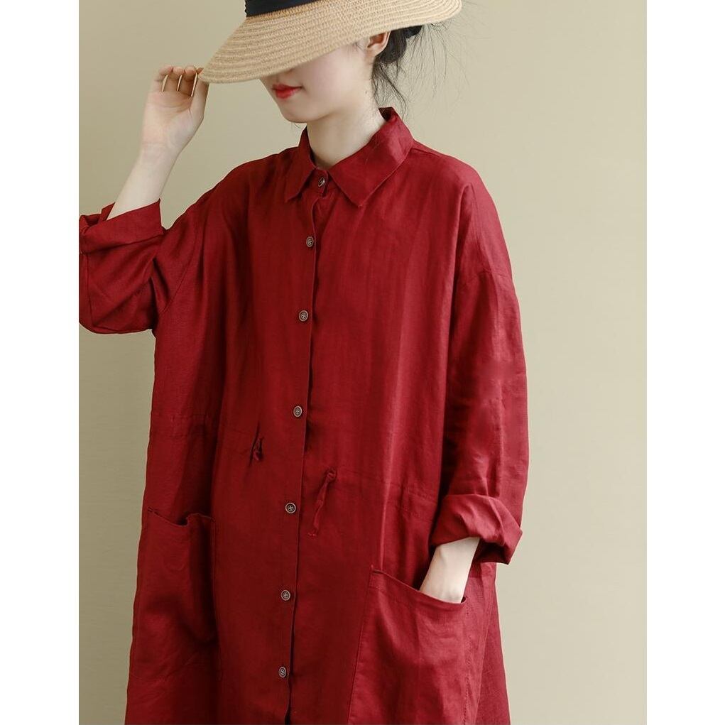 ワンピース シャツワンピース ロング ロング丈 マキシ マキシ丈 長袖 ドルマンスリーブ 襟付き フレア Aライン ウエストマーク ポケット 前開き 2way シンプル カジュアル 大人 上品 おしゃれ お洒落 ラフ ルーズ 個性的 存在感 抜け感 無地 春 秋 冬 20代 30代 レディース デート お出かけ 女子会 休日 アウトドア イベント 旅行 着回し 普段使い 楽ちん 体系カバー サイズ L XL 2XL 大きいサイズ ビッグサイズ ゆったり 色展開 赤 レッド | Raforea
