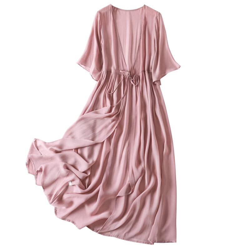 ワンピース フレアワンピース 膝下 ロング丈 袖あり 半袖 Vネック 襟なし フレア スリム シフォン リボン ウエストリボン ウエストゴム 透け感 薄手 かわいい 大人可愛い きれいめ シンプル カジュアル 大人 上品 お洒落 大人女子 こなれ感 ガーリー セクシー エレガント 主役級 抜け感 無地 春 夏 秋 20代 30代 40代 ママ 通学 デート お出かけ 女子会 休日 パーティー 旅行 着回し 普段使い 重ね着 オルチャン モテ 体系カバー 定番 トレンド 流行 インスタ映え ピンク ブルー | Raforea