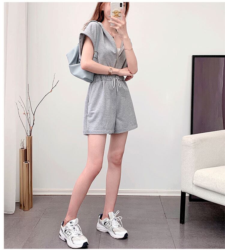 トップス ボトムス パンツ オールインワン サロペット 部屋着 ミニ ミニ丈 膝上 袖あり 半袖 Vネック 襟なし フード付き ファスナー ハイウエスト お得 かわいい シンプル カジュアル おしゃれ お洒落 ラフ ボーイッシュ スポーティー 無地 春 夏 秋 ロングシーズン 10代 20代 30代 レディース 女性用 ママ 学生 公園 休日 運動 ジム ヨガ アウトドア 旅行 ショッピング 着回し 普段使い 韓国 韓国系 オルチャン 楽ちん 体系カバー小さいサイズ 大きいサイズ ブラック グレー | Raforea