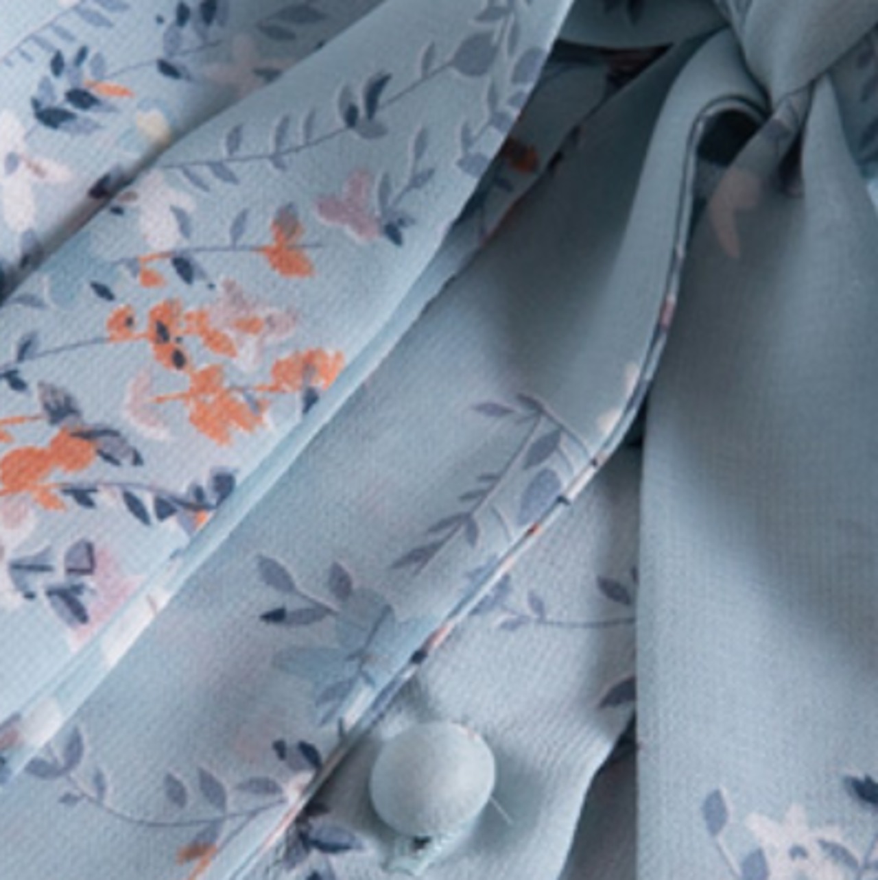 トップス シャツ ブラウス カットソー 袖あり 長袖 ボリューム袖 萌袖 襟付き スタンドカラー シフォン フリル リボン かわいい 大人可愛い きれいめ シンプル カジュアル 大人 上品 おしゃれ お洒落 大人可愛い 大人女子 こなれ感 ラブリー キュート ガーリー エレガント とろみ感 柄 花柄 小花柄 フラワー ビジネス OL 通勤 学生 通学 デート お出かけ 女子会 休日 パーティー 着回し 普段使い 韓国系 オルチャン ファッション コーデ モテ 青 ブルー 春カラー | Raforea