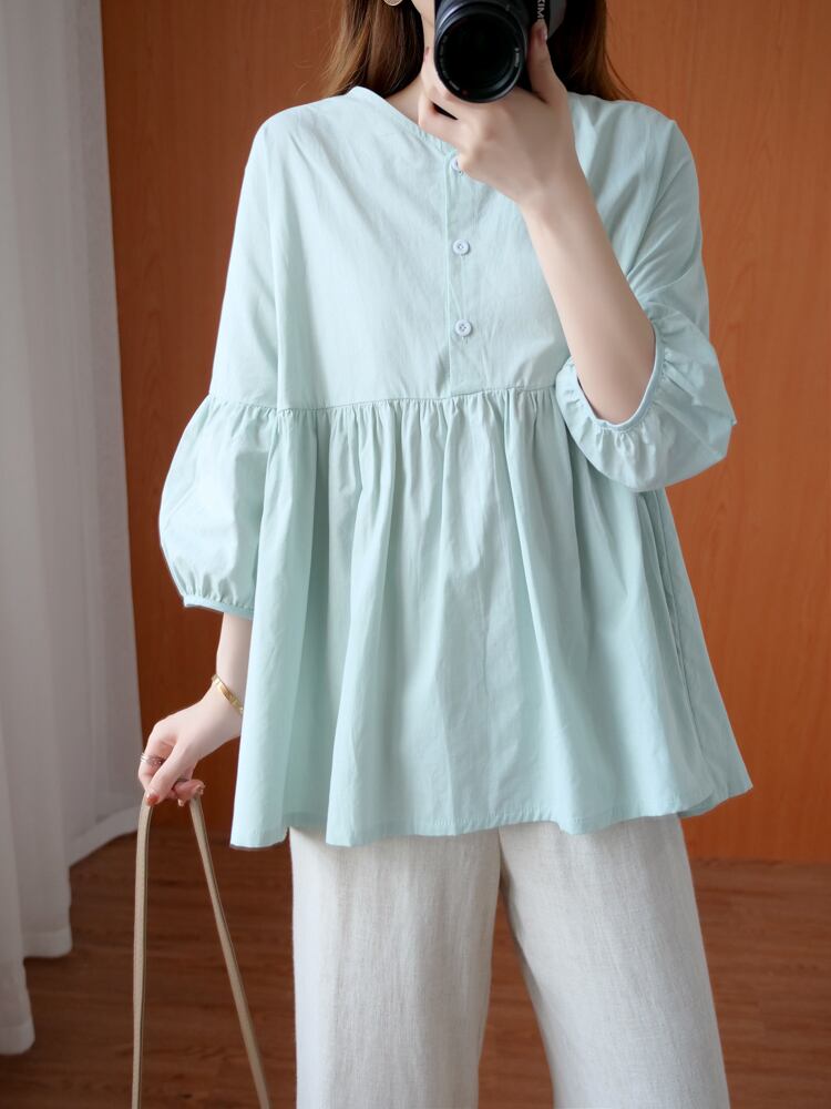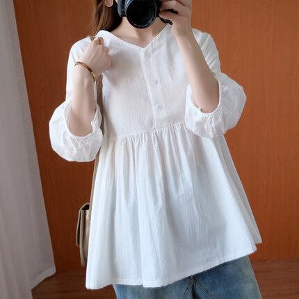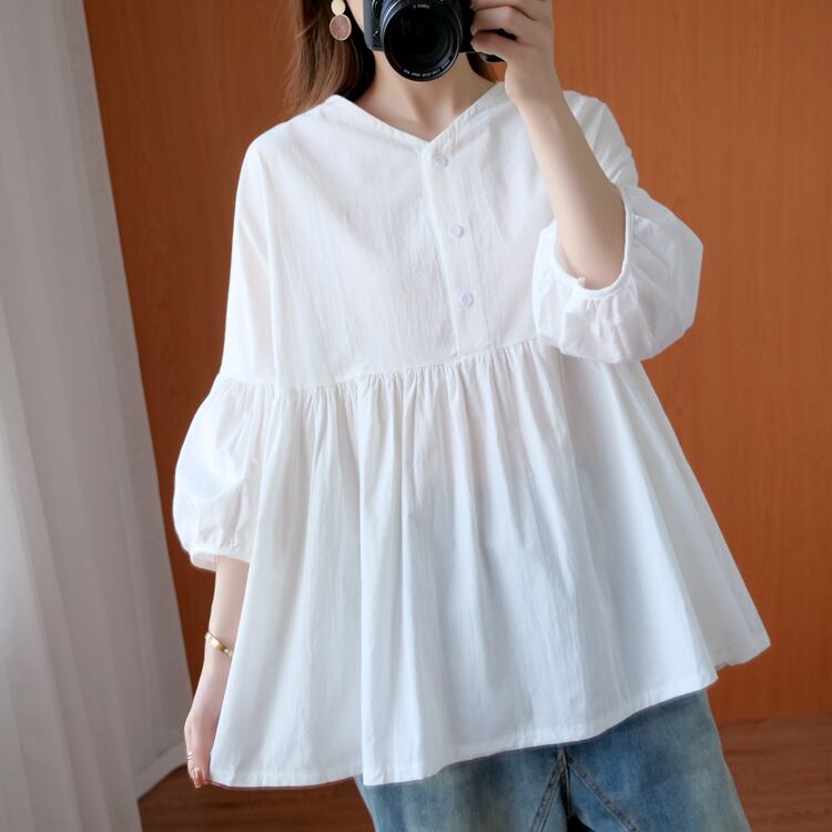 トップス シャツ ブラウス プルオーバー チュニック 白シャツ 白トップス 袖あり 七分袖 Vネック ペプラム かわいい 大人可愛い シンプル カジュアル 大人 おしゃれ お洒落 大人可愛い 大人女子 ラブリー キュート 無地 春 夏 10代 20代 30代 レディース 女性用 デート お出かけ 着回し 普段使い ファッション コーデ スタイル 楽ちん モテ インスタ映え XL 2XL 3XL 4XL 大きいサイズ ビッグサイズ ゆったり ゆる 白 ホワイト ライトブルー | Raforea
