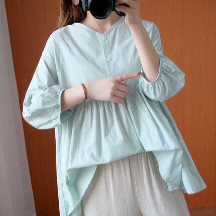ゆったりサイズのふんわりプルオーバーシャツ