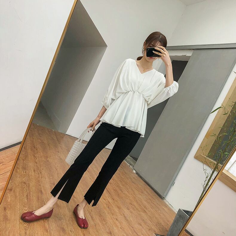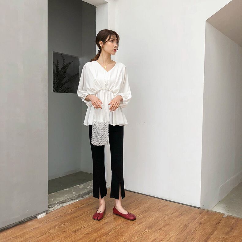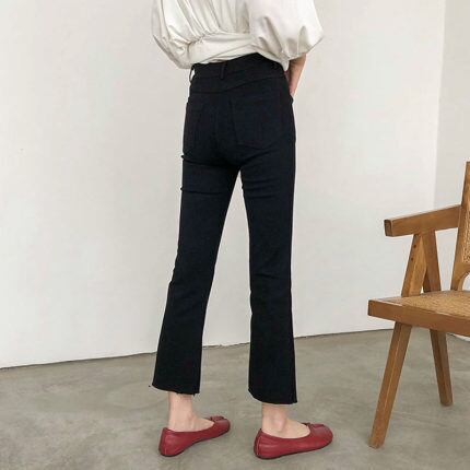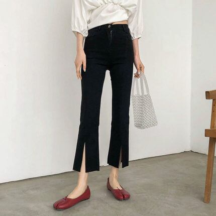 裾にスリットが入ったトレンドのパンツ。