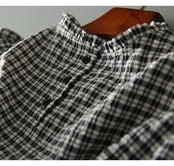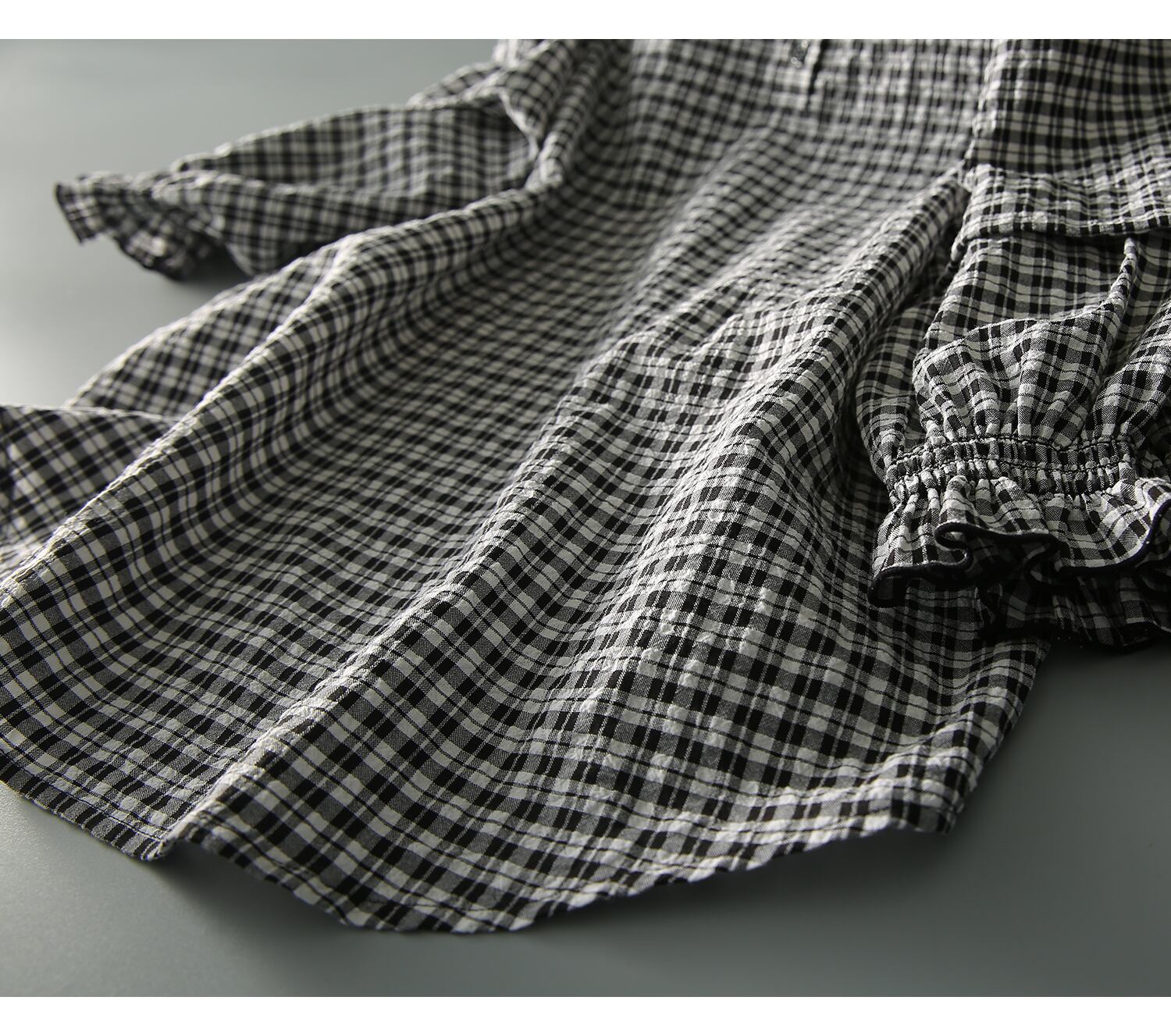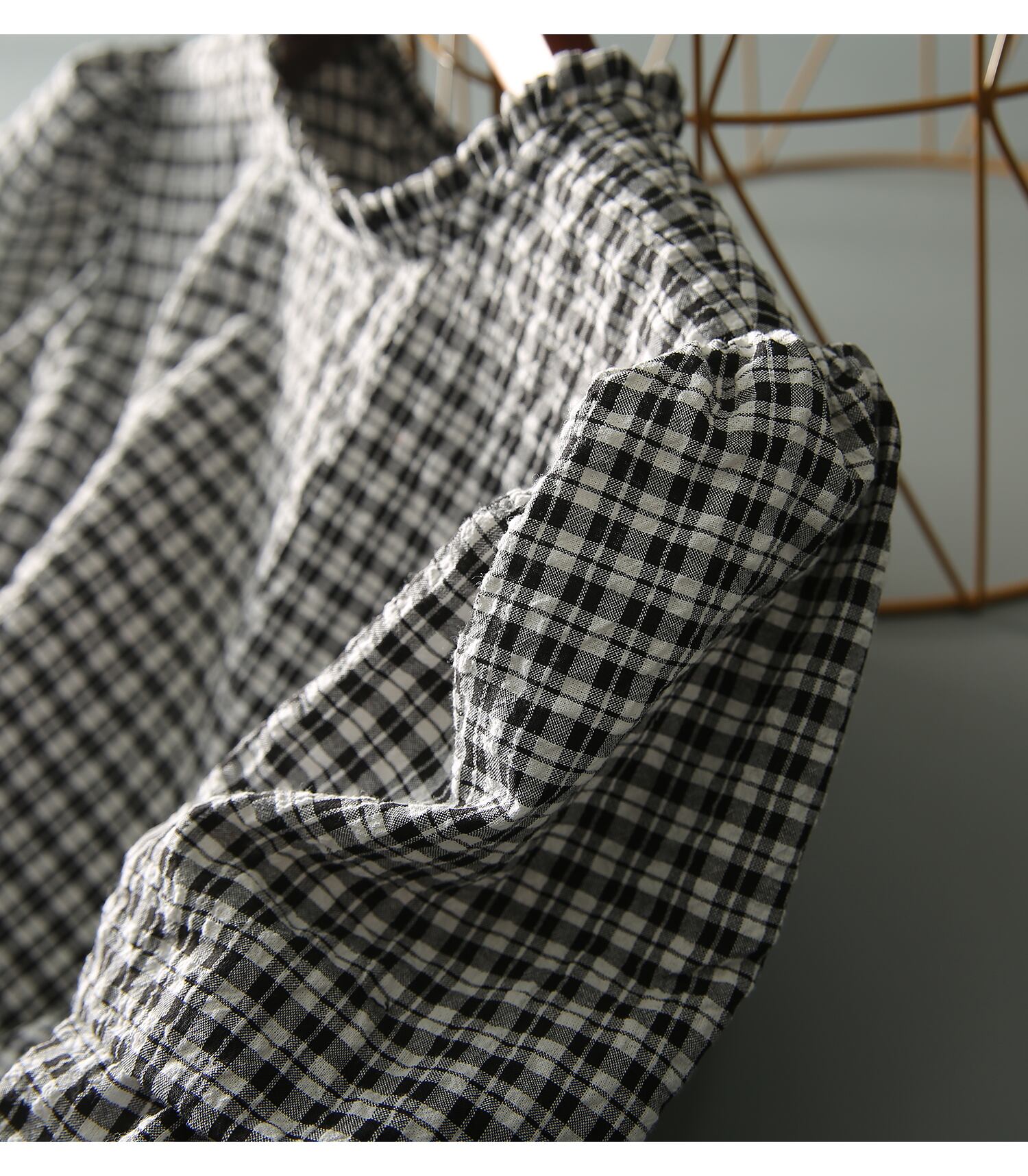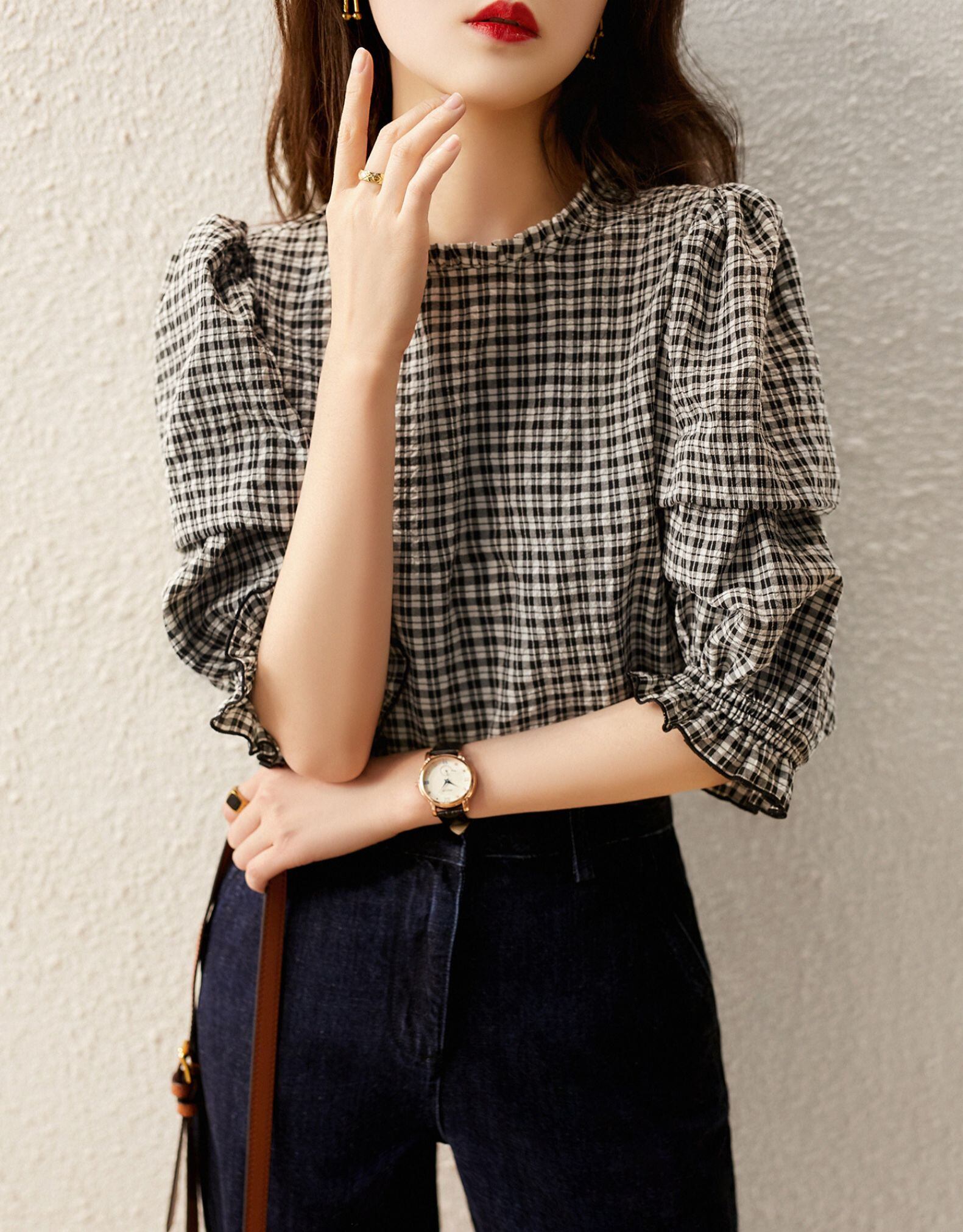 トップス シャツ プルオーバー 袖あり 五分袖 ボリューム袖 パフスリーブ ラウンドネック フリル かわいい 大人可愛い 大人 おしゃれ お洒落 レトロ 大人可愛い 大人女子 ラブリー キュート チェック柄 春 夏 秋 10代 20代 30代 レディース 女性用 OL 学生 デート お出かけ 着回し 普段使い 韓国 韓国系 ファッション コーデ スタイル モテ インスタ映え S M L XL 白 ホワイト 黒 ブラック | Raforea
