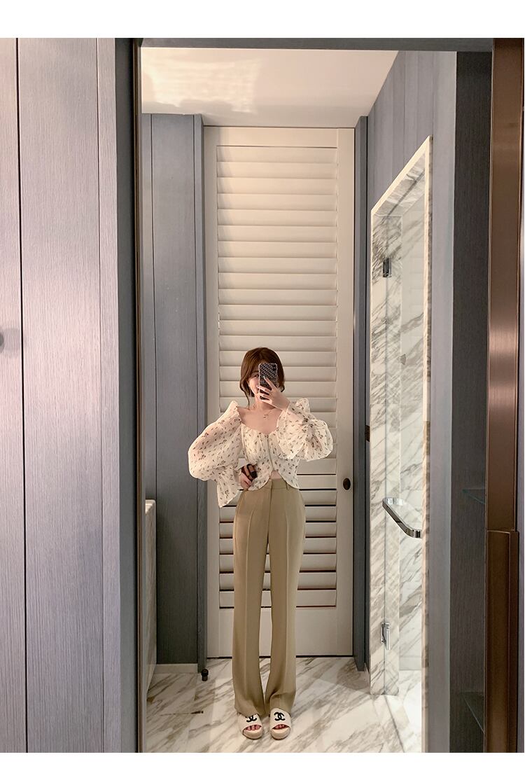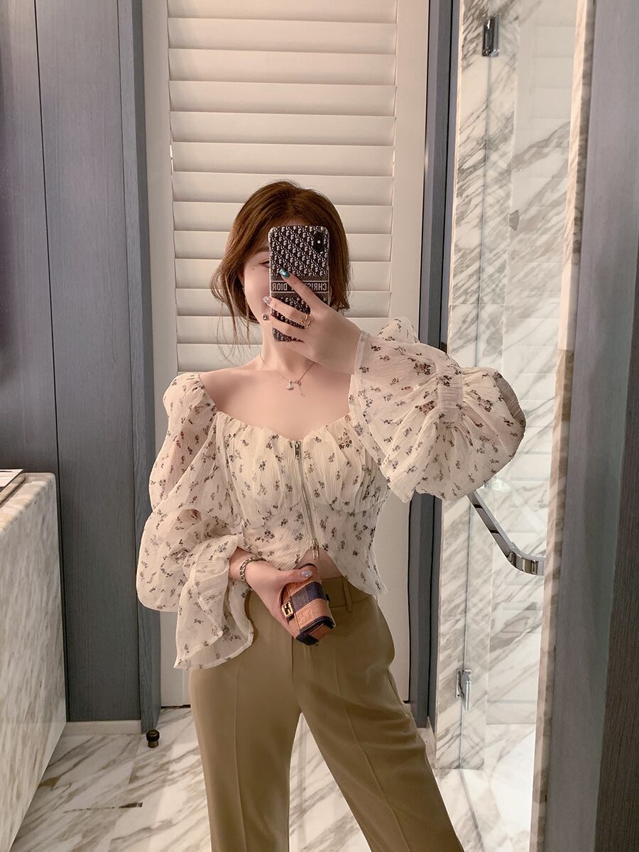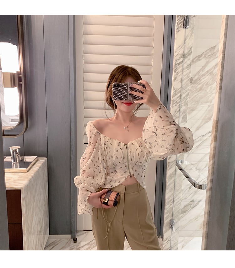 トップス シャツ ブラウス ショート ショート丈 クロップド丈 袖あり 長袖 パフスリーブ ラウンドネック スクエアネック 襟なし 細身 透け感 薄手 かわいい おしゃれ お洒落 ラブリー キュート ガーリー セクシー 存在感 爽やか 柄 花柄 小花柄 フラワー 春 夏 秋 ロングシーズン 10代 20代 30代 レディース 女性用 ママ 学生 デート お出かけ 女子会 休日 旅行 ランチ ショッピング 着回し 普段使い 韓国 韓国系 オルチャン 美脚 脚長 二の腕カバー 細見え スタイルアップ | Raforea