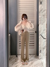 ガーリーなシャツ。クロップド丈が今時風でハイウエストのボトムスにぴったりです。韓国っぽコーデに。