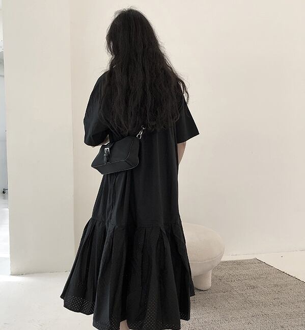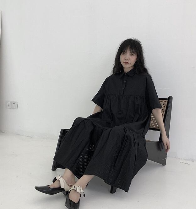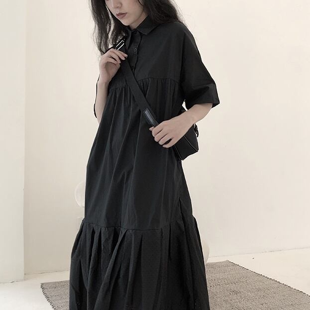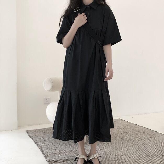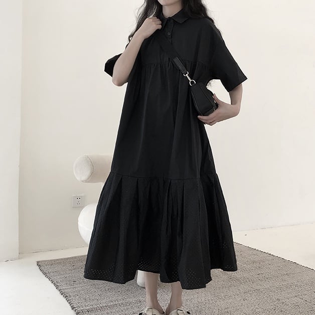 ワンピース フレアワンピース ティアードワンピース ミモレ丈 袖あり 半袖 襟付き フレア Aライン 切り替えデザイン パンチングデザイン 大人可愛い きれいめ シンプル カジュアル 大人 上品 お洒落 大人女子 こなれ感 クール ゴシック モード系 主役級 抜け感 無地 春 夏 秋 20代 30代 40代 ママ 通勤 通学 デート お出かけ 女子会 休日 旅行 着回し 普段使い 重ね着 楽ちん モテ 体系カバー 定番 トレンド 流行 インスタ映え ワンサイズ ゆったり ブラック 大人カラー | Raforea