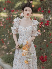 細かな花柄がガーリーでヨーロピアンなワンピース。