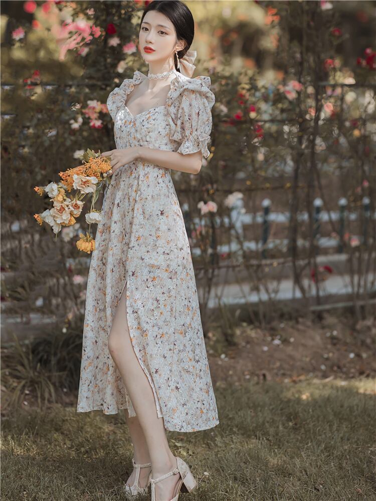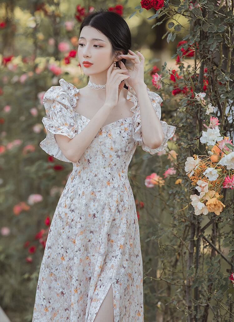スリット入りワンピース 花柄 ワンピース フレアワンピース ロングワンピース 膝下 ロング ロング丈 袖あり 長袖 ボリューム袖 襟付き スイートハートネック フレア Aライン ウエストマーク ハイウエスト かわいい 大人可愛い きれいめ 大人 上品 おしゃれ お洒落 レトロ 清楚 大人女子 ラブリー キュート ガーリー エレガント 存在感 シック ナチュラル 柄 小花柄 フラワー 春 夏 秋 ロングシーズン 10代 20代 30代 レディース 女性用 学生 デート お出かけ 公園 女子会 休日 | Raforea